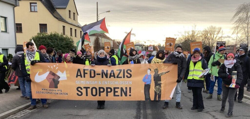 Umso wichtiger ist es nun, den Protest gegen die AfD fortzuführen und auszubauen. Das ist die Aufgabe aller Antifaschist:innen im angelaufenen Wahlkampfe. Mit dem Schwung der Proteste in Riesa im Rücken können jetzt Zehntausende jeden Auftritt der AfD konfrontieren – wie wir letzte Woche in Hamburg gesehen haben, wo 17.000 gegen den Besuch von Alice Weidel in der Bürgerschaft demonstrierten. Aber auch kleine Aktionen sind möglich. Am Wochenende verhinderten acht Aktive vom Bergedorfer Bündnis gegen Rechts einen Infostand der AfD – einfach durch sichtbare Anwesenheit.