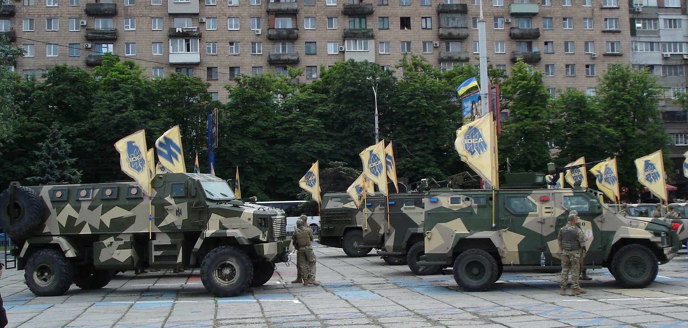 Aus Regierungskreisen und in der bürgerlichen Presse wurde vorab nicht einmal Kritik an den Veranstaltungen der »3. unabhängigen Sturmbrigade« des ukrainischen Asow-Bataillons geübt, bei der »Kriegshelden zum Anfassen« und die »epischsten Geschichten von der Front« garniert mit »Soldatenhumor« präsentiert werden sollten. Die 3. Sturmbrigade wird vom bekennende Bandera-Anhänger und Neonazi Andrij Bilezky angeführt, ihre Mitglieder posieren in Auschwitz mit T-Shirts auf denen das Hitler-Zitat »Where we are, there is no place for anyone else« (deutsch: »Wo wir sind, ist kein Platz für andere«) abgedruckt ist.