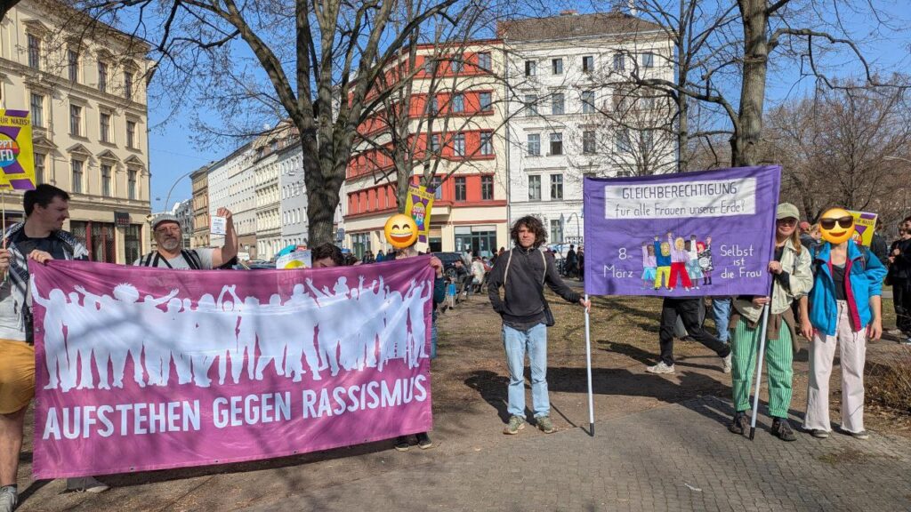 Neben kämpferischen Reden und sozialen Forderungen kam es auch zu Störungen rechter Influencer und massivste Polizeigewalt am 8. März. Ein Bericht von Svu Berlin