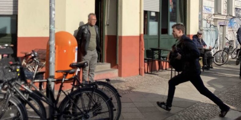 Unter Polizeischutz lief der selbsternannte rechte »Journalist« durch die Kundgebung und störte durch provokative Nahaufnahmen immer wieder Teilnehmende. Menschen drehten sich weg und riefen mehrfach »Nazis raus«. Zwei unserer Genoss:innen beteiligten sich erfolgreich daran, den beiden Rechten nachzustellen und sie von der Kundgebung zu drängen. Die Demo und Abschlusskundgebung am Roten Rathaus verliefen daraufhin ungestört.