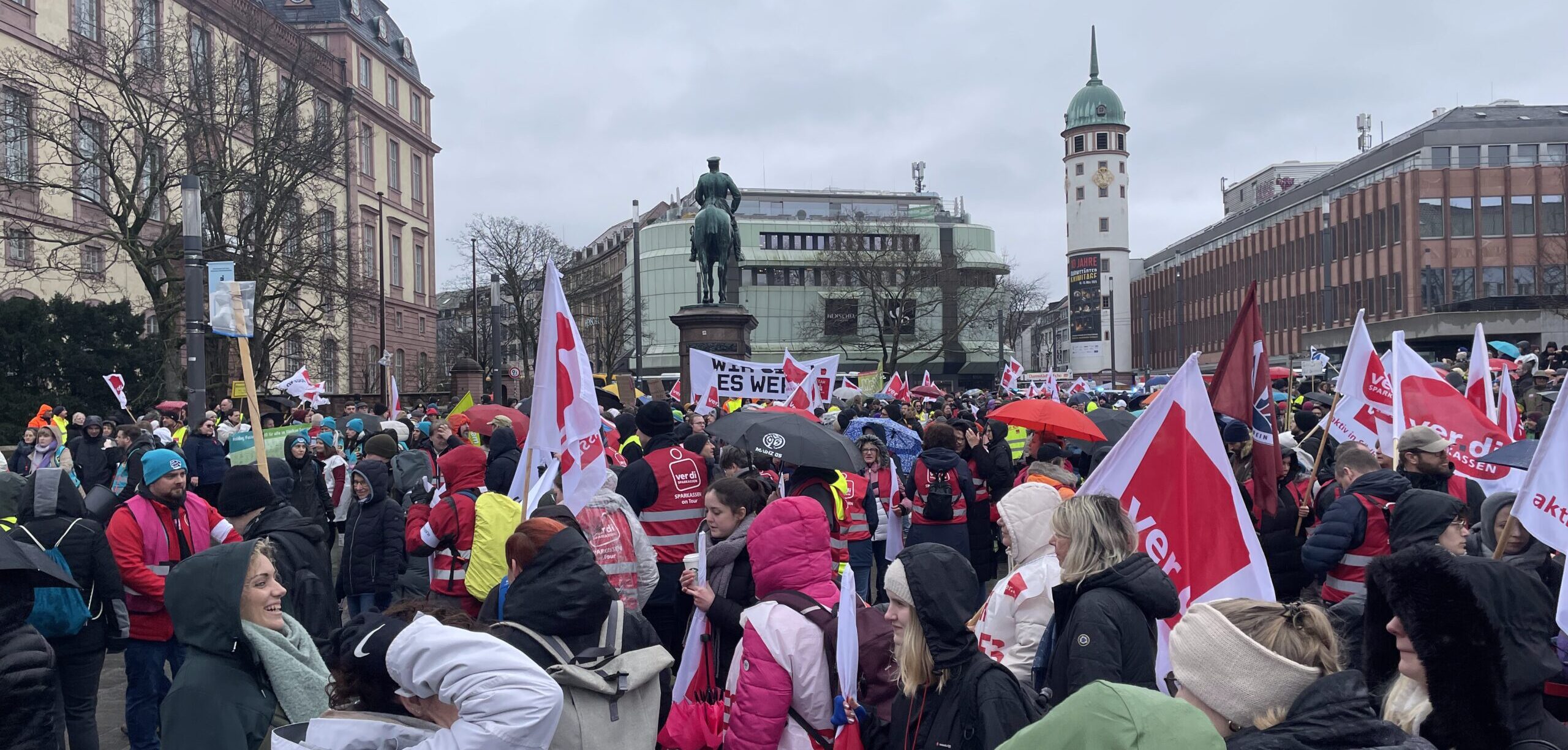 Am Mittwoch, dem 26. Februar, gingen mehr als 2.000 öffentlich Beschäftigte in einem Warnstreik auf die Straße, um für ihre Forderungen in der aktuellen Tarifrunde zu demonstrieren. Von Svu Frankfurt