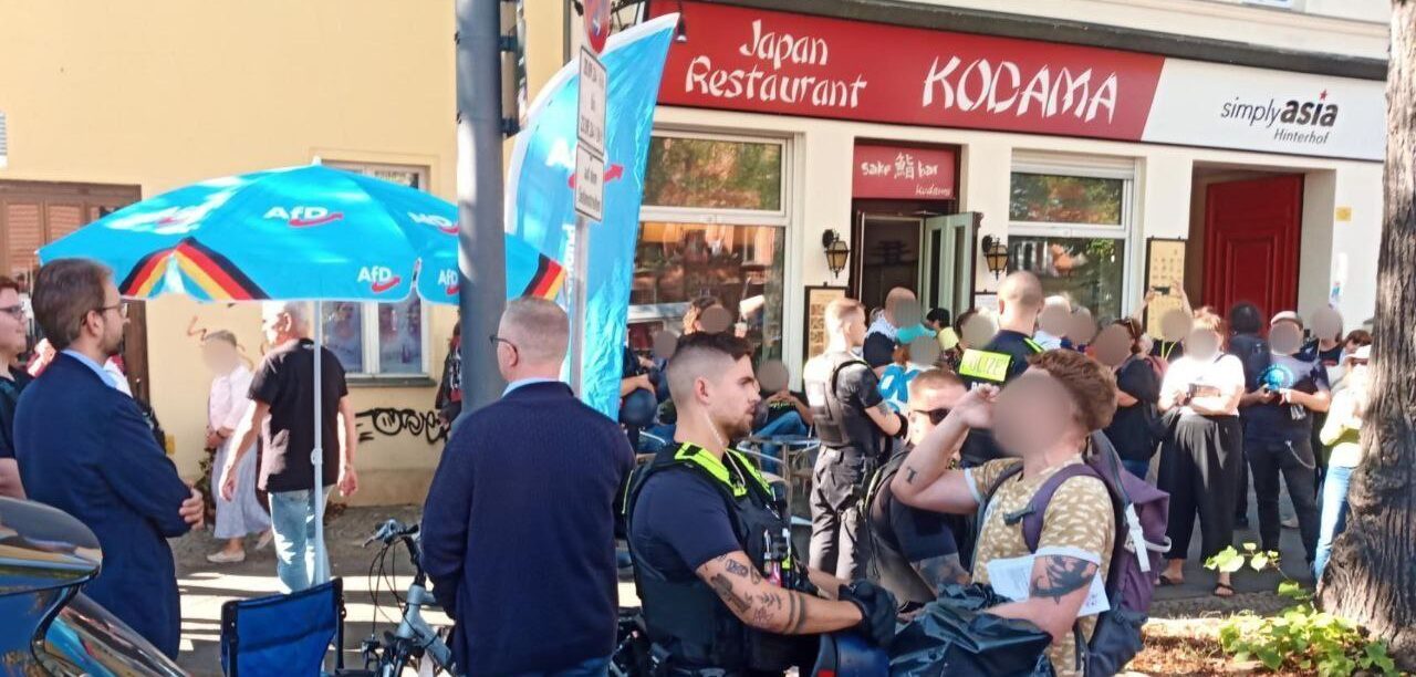 Bericht vom Protest gegen den AfD-Stand eines Straßenfests in Berlin-Friedrichshagen Ende September 2024. Von Svu Berlin