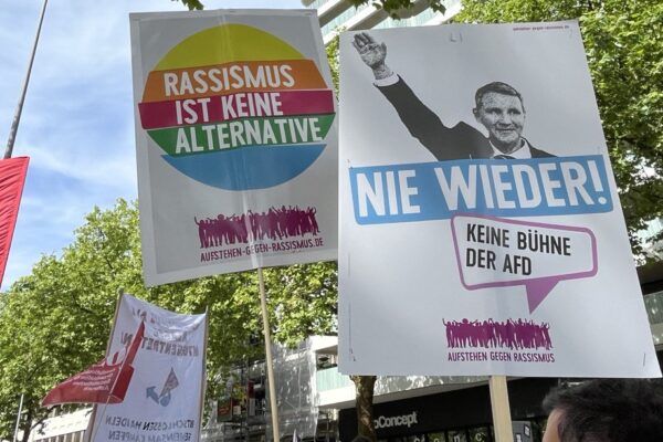 »Björn Höcke ist ein Nazi« und weitere Schilder auf einer Anti-AfD-Demo