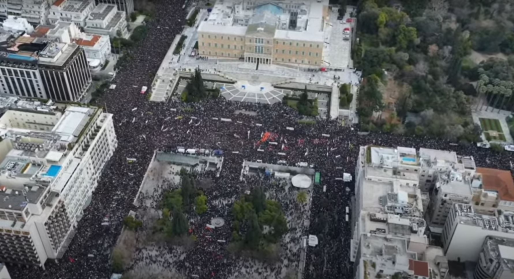 Die Proteste bündelten die gesamte gesellschaftliche Frustration über ein System, in dem Profit über Menschenleben gestellt wird. Umfragen bestätigten, was auf der Straße längst offensichtlich war: 87 Prozent der Bevölkerung sahen nicht allein den Fahrdienstleiter in der Verantwortung – entgegen der anfänglichen Darstellung der rechts-neoliberalen Regierung. Für 58 Prozent trug die Privatisierung der Eisenbahn eine klare Mitschuld an der Katastrophe.