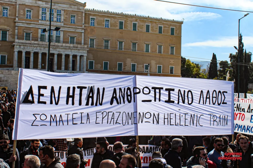 Am 28. Februar 2023 kollidierten zwischen Athen und Thessaloniki zwei Züge auf offener Strecke miteinander. Die Schuld für die zahlreichen Toten und Schwerverletzten wurde von der Konzernseite den Beschäftigten zugeschoben. Damals formierten sich umgehend massive Proteste, die sich zu landesweiten Streiks verbanden. Zum zweiten Jahrestag der Katastrophe veröffentlichen wir erneut unser Interview mit Minoas Andriotis, ergänzt um eine aktuellen Bericht zu den jüngsten Protesten
