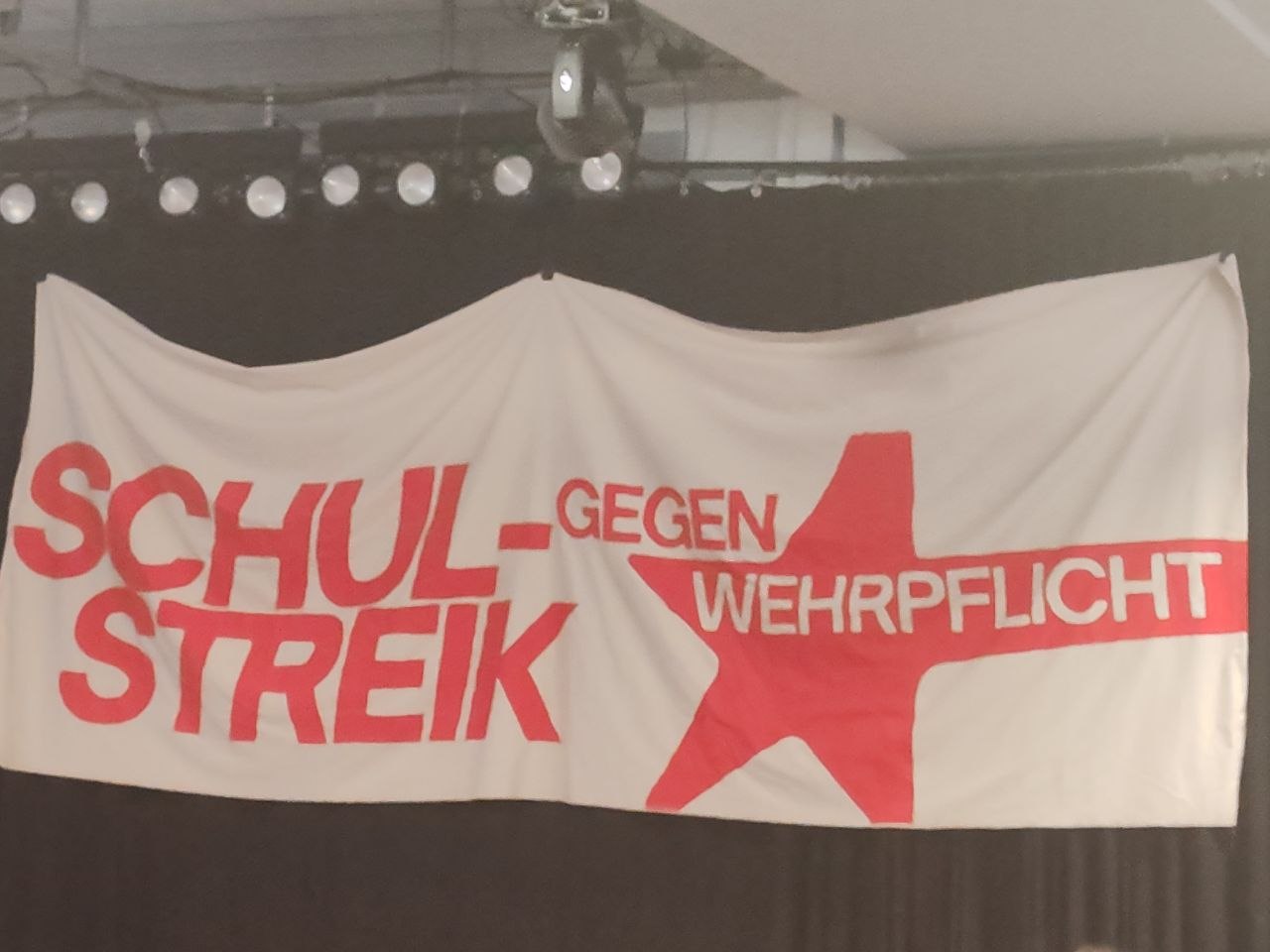 Auf dem Auftaktpodium wurde die Frage der Repression thematisiert. So hatten Lehrkräfte an vielen Orten in Deutschland ihre Schüler*innen eingeschlossen, Taschen wurden durchsucht, und bei Protesten gegen Jugendoffiziere an Schulen wurde der Verfassungsschutz aktiv und befragte Schüler*innen zu ihrer Motivation. Das Ziel ist klar: Je härter die Konsequenzen, desto schwieriger wird es, einen breiten Protest zu organisieren.