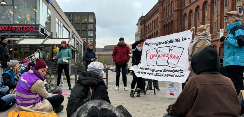 Wir stehen hier heute vor dem Roten Rathaus, um gegen die angekündigten Kürzungen in der Wohnungsnotfallhilfe zu protestieren, die der Senat nun bekannt gab. So komplex die gesellschaftlichen Herausforderungen der letzten Jahre zu sein scheinen, so gibt es jedoch ein unbestreitbares Zusammenspiel von politischen Entscheidungen, das die soziale Ungleichheit immer weiter vertieft.