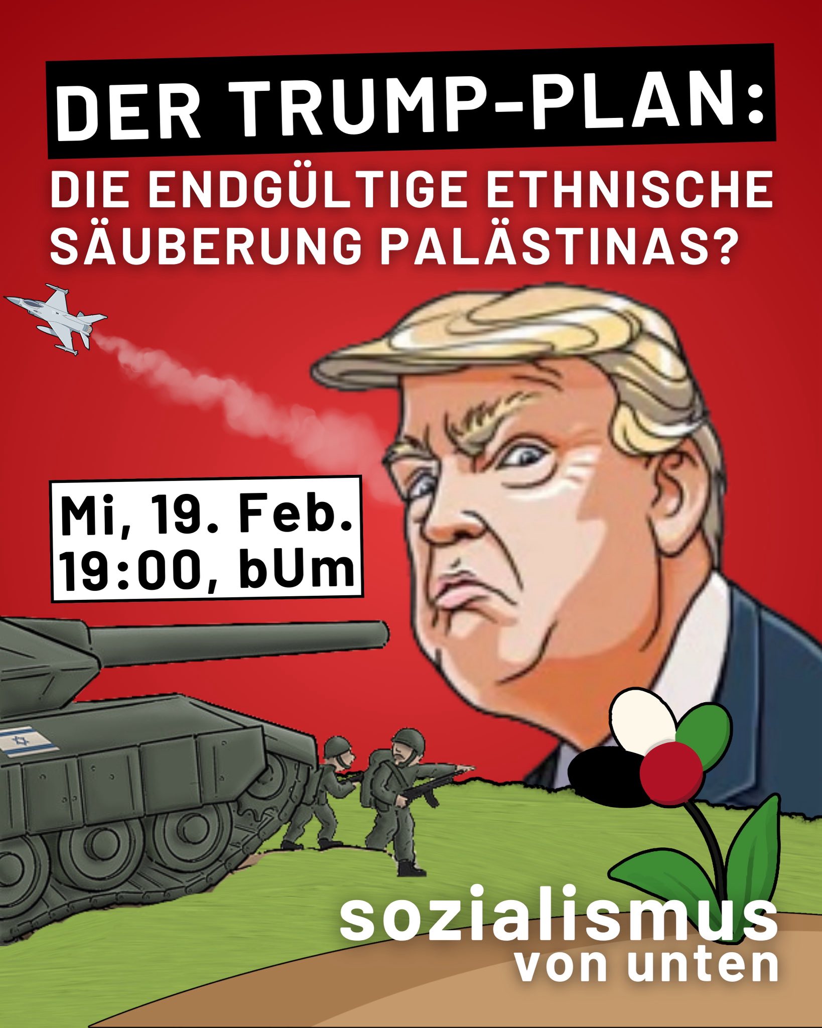 Was können wir hier in Deutschland tun, wo die Bundesregierung weiter Waffen an Israels rechtsextreme Regierung liefert und ein möglicher Kanzler Merz den Haftbefehl gegen Netanjahu nicht vollstrecken will? Diese und weitere Fragen wollen wir gemeinsam diskutieren und die nächsten Schritte wie Aktionen planen.