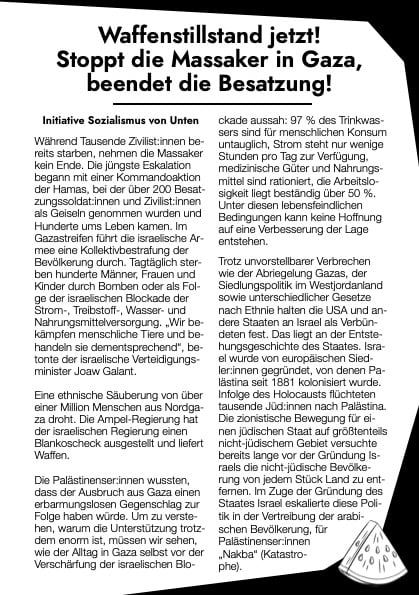 Flugblatt zur Antikriegsdemonstration in Berlin am 25. November 2023