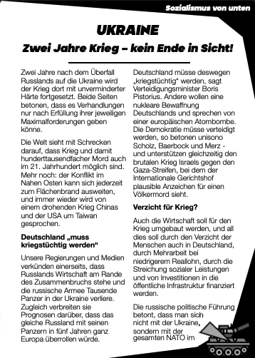 Flugblatt für Anti-Kriegs-Demonstrationen zum zweiten Jahrestag des Ukraine-Krieges