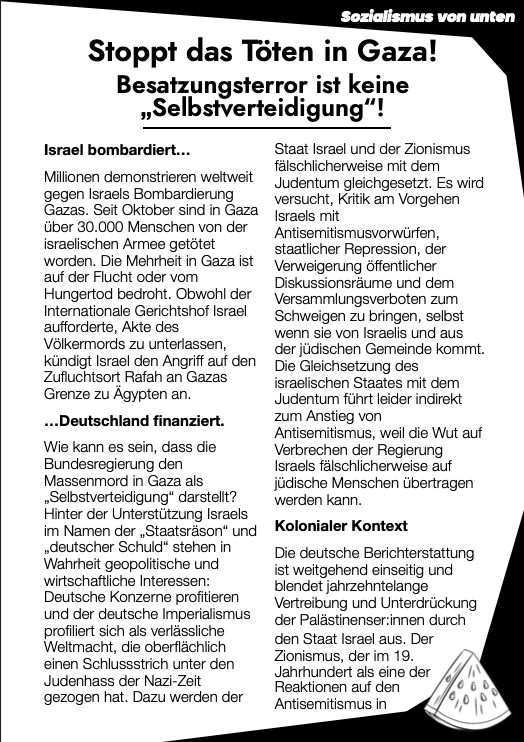 Flugblatt zur Palästina-Solidaritäts-Demonstration in Berlin am 13. Januar 2024